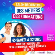 Alors rendez-vous le samedi 4 octobre, de 8h à 17h, à la salle d’honneur - mairie de Nouméa pour participer au 1er salon « Découverte des Métiers et des formations ».