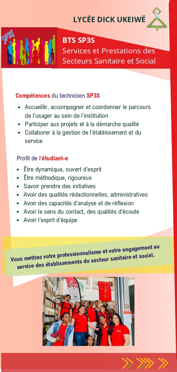 Le titulaire du BTS SP3S peut accéder à des postes de gestionnaires dans les organismes de sécurité sociale, de responsable de secteur en service d’aide à domicile, d’assistant médical en centre de lutte contre le cancer, conseiller d’action sociale dans les mutuelles, coordonnateur d’activités sociales, ...